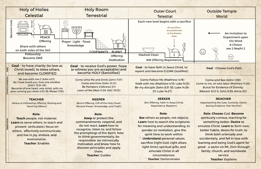 Embark on a transformative journey of spiritual growth with the "Path of Stone Tables Progression Poster," an inspiring 11x17 visual guide taken from The Path of Stone Tables vol. 1 that maps your path from the outer world to divine unity, drawing from ancient temple symbolism and sacred scriptures. This beautifully designed poster divides the progression into four stages—Outside the Temple (World), Outer Court (Telestial), Holy Room (Terrestrial), and Holy of Holies (Celestial)—highlighting key goals such as choosing God's path, achieving faith and repentance, receiving divine power through covenants, and ultimately becoming one with Christ in charity and glory. Featuring simple illustrations, scriptural invitations from the Bible, Book of Mormon, and Doctrine & Covenants, and practical applications for daily life, it's the perfect teaching tool for families, educators, or personal study, helping you cultivate habits of service, scripture pondering, and Spirit-guided living to emulate Christ and become a savior on Mount Zion. Ideal for home, church, or classroom display, this poster empowers you to experiment upon His word, form better habits, and share fellowship across the veil—order yours today and elevate your spiritual quest!